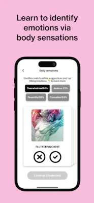 - Identify & log your emotions with the help of our tools (on a much more detailed and granular level than mood trackers)