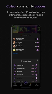 Coordinate IRL (in real life) encounters with the community calendar and the map of holders; get notified when your travel plans overlap