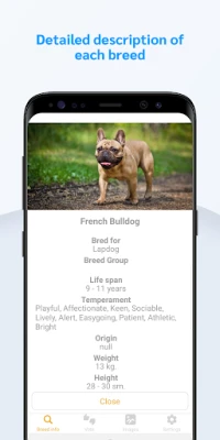 In the app dog breeds you can find a description of the breed and study in detail all the characteristics, and then choose a dog according to your requirements. High image quality will allow you to see the features of the dog in great detail. In the app dog breeds reference there are many photos of different breeds. The selected images will be stored in favorites. You can leave a vote for your favorite dog pics. Dog breeds app with detailed descriptions and photos for free. The search for a breed is carried out by name. Pawesome dog breeds and images in the app Dog breeds guide.