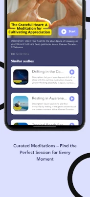 If you prefer to meditate without guidance, use the Self Meditation Mode. Set your own meditation duration, enjoy a moment of silence, and practice mindfulness on your own terms. Perfect for those who like to follow their own pace and rhythm.