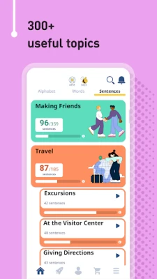🈚 5,000 PHRASES (frequently used): categorized into 20 topics and 120 subtopics that cover any daily life or travelling situations.