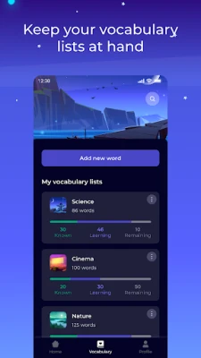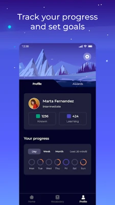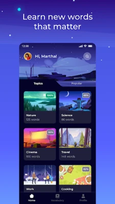 Designed for busy people — open the app, learn 5 words, done.