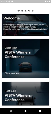 To get access to the app, you need an access code. Contact your Volvo Event manager to receive ongoing event codes.