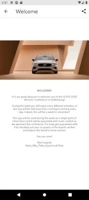This App contains news, press info from Volvo Cars. It helps visitors, press, hosts and appointed user groups to keep track of information regarding events hosted by Volvo Cars Corporation.
