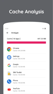 ✓ Analyze app's cache ✓ Clear cache of apps either manually or automatically ✓ History ✓ Detailed history ✓ Floating dock for easy launch